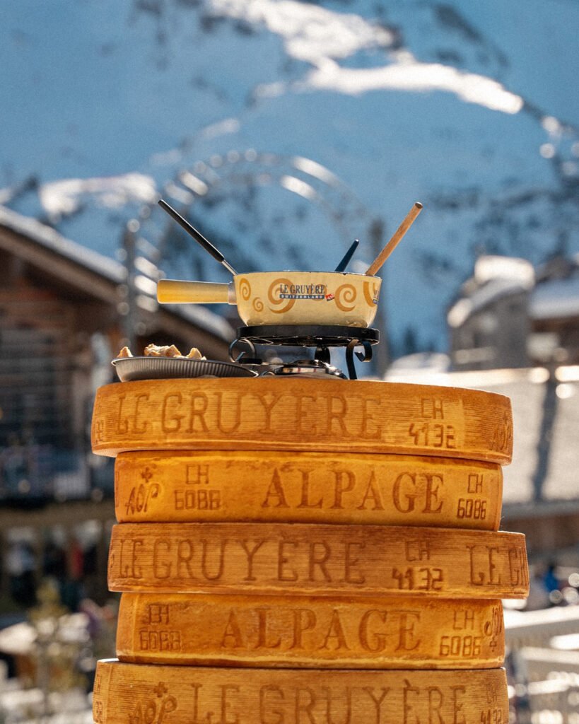 A pot of Reblochon fondue, inhabited by gushing morel mushrooms, is swiftly cooled by goblets of wine which arrive via wine gondola-poured from double-magnum bottles of Moët & Chandon and Veuve Clicquot.